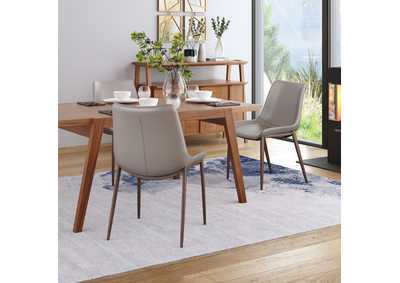 This armless contoured chair with its simple silhouette can dress up your dining space or keep things casual. Beautifully stitched design on gray faux leather keeps an eye on the details. Comfortable enough to use as a desk chair. Matte brown Faux Wood legs are complete with protective plastic feet to keep your floors scratch-free.